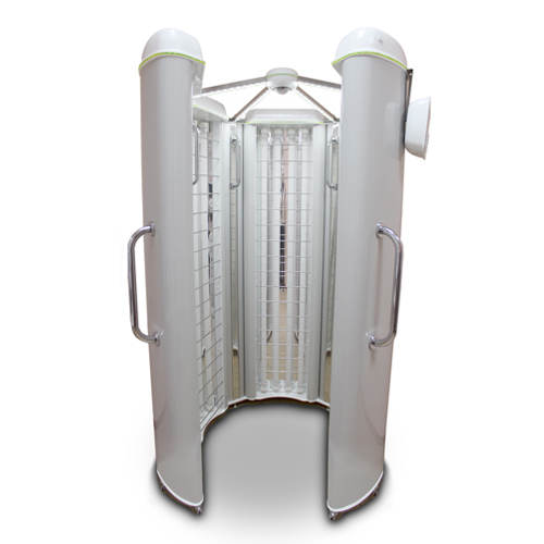 Псоролайт 100-6 широко используется в дерматологических клиниках и частных кабинетах. Конструкция представляет собой пяти однотипных секций, три из них имеют стоят неподвижно на опорах, дву секции имеют 4 колеса, открываются и впускают пациента внутрь кабины, где и происходит сама терапия. На корпусе есть две ручки для врача и внутри 4 ручки для пациента. Каждая секция имеет по 4 лампа лампы с мощностью каждая по 100 Вт, производитель ламп фирма Philips. Срок службы лампы около 1000 часов. Лампы закрыты специальной защитной решёткой. В кабинете освещение светодиодами.