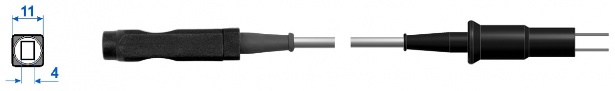 Кабель для подключения монополярного лапароскопического инструмента, монополярных пинцетов к аппаратам ФОТЕК, MARTIN, BERCHTOLD (длина кабеля 3 м, безопасный штекер 4 мм)
