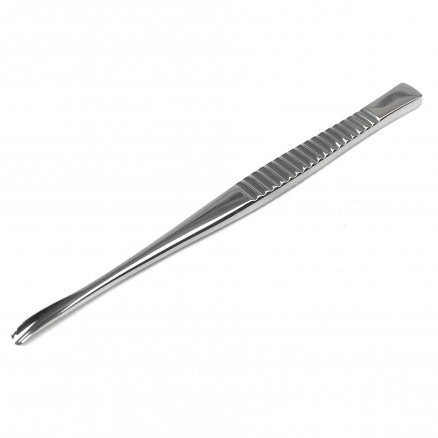 Долото по Partsch, с рифленой ручкой жолобкуватое изогнутое. Длина 13,5 см, диаметр 4 мм