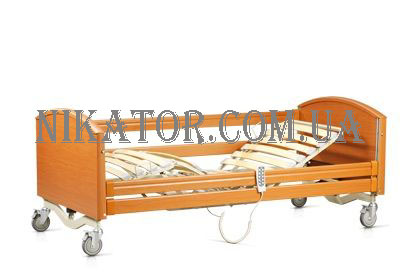 Данная моделькровати используется как в стационарах медучереждений так и в домашних условиях при уходе за "лежачими" больными. Данная модель кровати медицинской поставляется в комплекте с трапецией надкроватной. С помощью электропривода регулируется высота кровати , а также угол наклона ножной и головной секций. Поручни с регулировкой по высоте. Колеса кровати диаметром 125 см (5’’) имеют тормоз-фиксатор. Поручни кровати и спинки произведены из дерева.