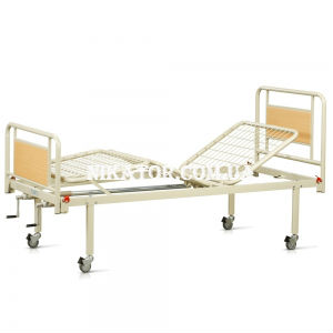 Механическая медицинская кровать OSD94V, OSD-90V с возможностью регулировки головной и ножной секции. Данная модель функциональной медицинской кровати оснащена двумя ручками для возможности  поднимать и опускать ножную и головную секции кровати. Рама кровати произведена из стали окрашенной порошковой краской. Спинки кровати декорированы деревянными вставками. Дополнительно данная модель кровати может комплектоваться колёсами с тормозом - фиксатором, трапецией надкроватной и поручнями.