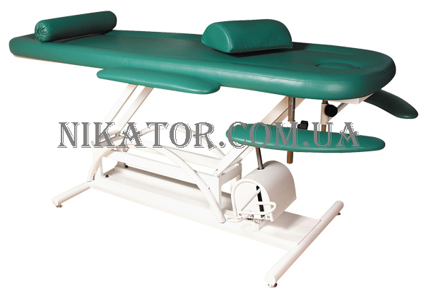 Кушетка с механическим регулятором высоты – это более усиленная металлическая конструкция из профиля, устойчиво стоящая на основании с четырьмя опорами, поверх которой находится, более мягкое ложе с прорезью для лица. Массажная кушетка комплектуется двумя парами подлокотников, одна из которых регулируема. Ложе кушетки М-3 плавно меняется высоту за счет винтового механизма, всё обтянуто материалом, разрешающим обработку дезинфекционными средствами. Каркас кушетки окрашен сертифицированной нетоксичной белой порошковой краской, разрешенной в применении в медицинских учреждениях