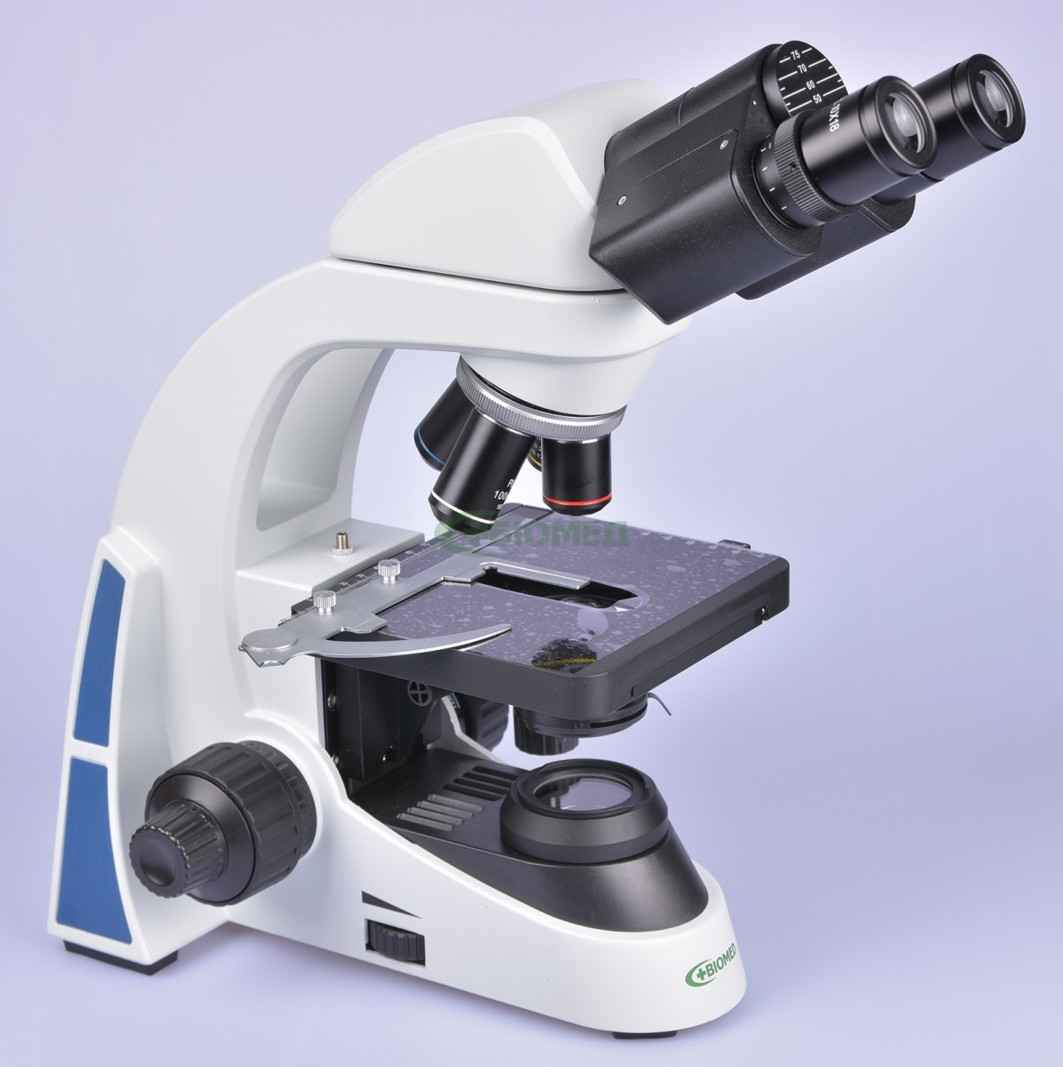 Особенностями лабораторного микроскопа являются бинокулярный тубус с поворотом на 360 ° и углом наклона до 30° и окуляр с увеличенным полем зрения и возможностью диоптрийной подстройки. Револьверная головка реверсивного типа обеспечивает больше места перед предметным столиком, ускоряя и облегчая работу с предметным стеклом.