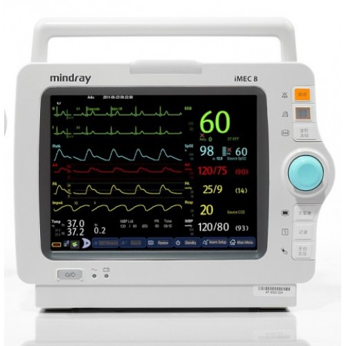Монитор пациента IMEC8 представляет собой прикроватную модель монитора дисплеем, который позволяет контролировать жизненно важные функции пациента. На экран выводится ЭКГ на 3/5 отведения, ЧД, частота сокращений сердца, артериальное давление, измеренное неинвазивно. Опционально можно добавить модуль инвазивного измерения давления. Так же на экран выводится сердечный выбором, насыщение крови углекислым газом. Дополнительно – температурный модуль. Монитор пациента моет работает от батареи на протяжении 120-240 минут. Особенность данной модели в возможности подключения с станции центрального мониторинга, что позволяет наблюдать за пациентом дистанционно.