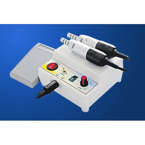 Регулировка оборотов производится с помощью ручки, управление аппаратов ножное. Бормашина для стоматологии непрерывно работает 40 мин, после чего требуется 20 минут отдыха. Имеет возможность вращения по сторонам, а также стабилизация оборотов. Частота аппарата 35 000 оборотов за минуту. Работу обеспечивает два микродвигателя. Мощность установки 120 Вт.