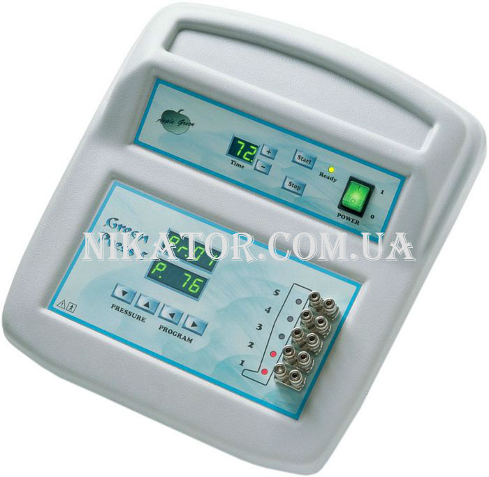 Прибор Green Press 5 для аппаратной косметологии медицинского и/или косметического лимфодренажа. Прибор Green Press 5 имеет пять парных выходов.