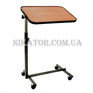 Прикроватный столик используется в медицинских учреждениях для создания комфортных условий при уходе за пациентом. Столик регулируется по высоте, а также может изменять угол наклона. Столешница выполнена из дерева, покрыта лаком. Внизу столик устойчиво расположен на колесиках с тормозами, что позволяет свободно перемещать прикроватный стол по палате, а также не беспокоиться о его стабильной фиксации.