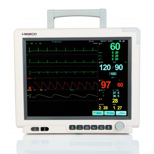 Реанимационный монитор G3L имеет крупный экран с диагональю 15”, который поможет держать под контролем основные показатели жизнедеятельности пациента во время проведения реанимационных мероприятий. Монитор пациента G3L способен отображать до девяти выбранных функций в одно время. Имеет комфортное управление с помощью клавиш на передней панели, а так же пульта дистанционного управления и джойстика. Монитор HEACO позволяет записать шесть ЭКГ отведений с автоматическим анализом аритмий и сегмента ST. В работе монитора большую роль играет наличие фильтрации электрических помех и устойчивость к дефибрилляции. Реанимационный монитор G3L держит под контролем ЧДД, ЧСС, пульс, насыщение крови кислородом, ЭКГ, НИАД.