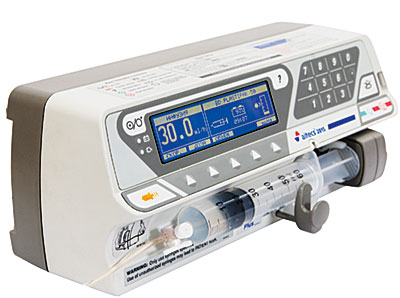 Медицинский шприцевой насос имеет отличительные особенности: простота в использовании, большой дисплей, информация на русском языке, автоматическое определение размера и правильности установки шприца, точность введения препаратов +-2%.