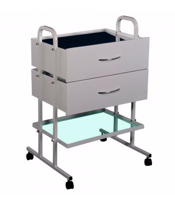 Манипуляционный стол представляет собой металлическую конструкцию из профиля, установленную на четыре устойчивых пластиковых колеса, имеющие тормоз-фиксатор. Стол СМ-3-2 имеет два ящика, изготовленных из нержавеющей стали и нижнюю полку из стекла.