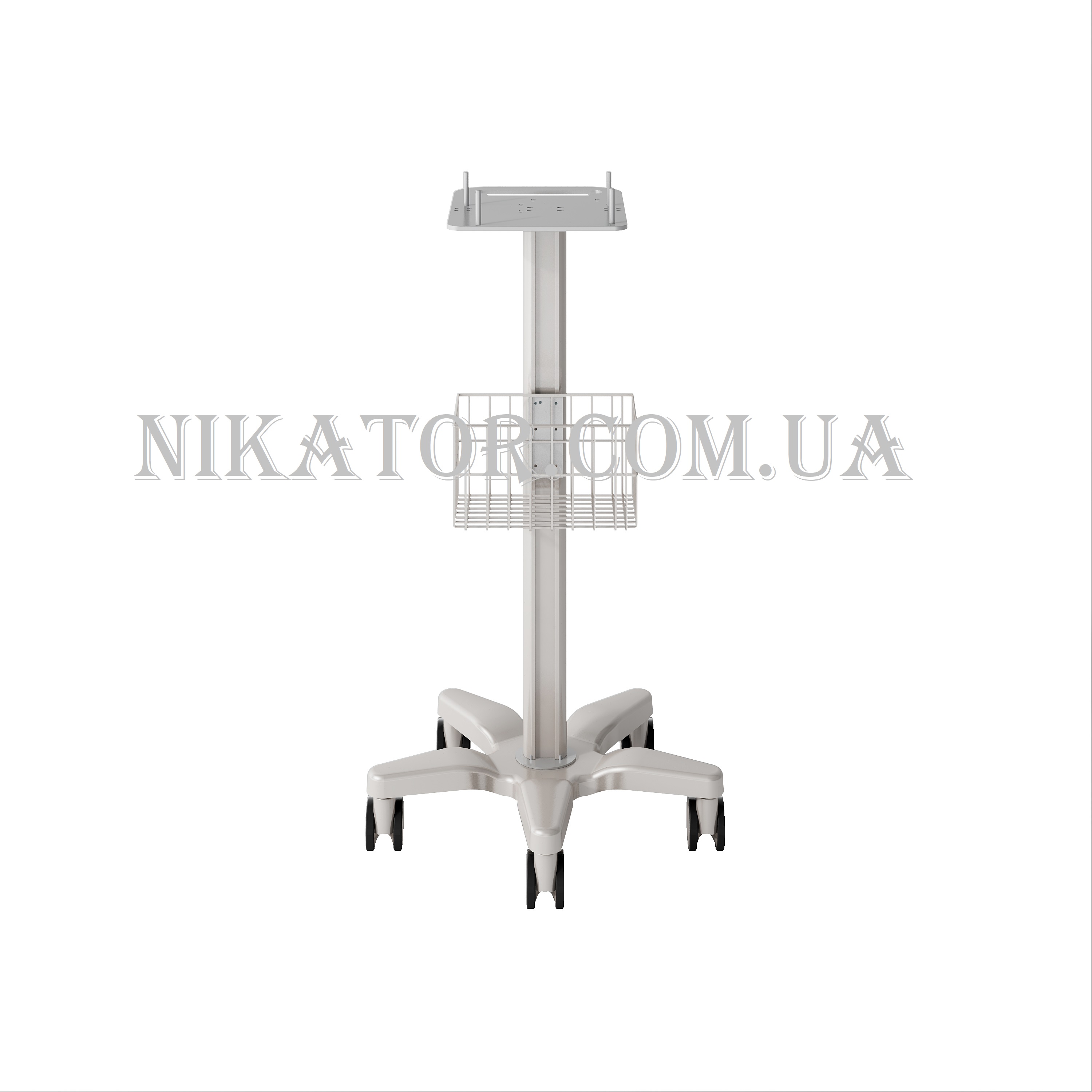 Стойка для ИВЛ В011Б используется для комфортного размещение аппарата ИВЛ в палатах, стационарных отделениях, блоках интенсивной терапии, в транспортных средства и в домашних условиях. Стойка для аппарата ИВЛ расположен на 5 колесах, конструкция устойчива и позволяет пользователю без труда перемещать аппарат в помещении. Колеса имеют тормоза-фиксаторы. Внизу расположена корзинка для хранения аксессуаров, личных вещей, проводов и прочего.