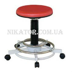 Стул доктора 1002 имеет округлую форму, высота регулируется при помощи пневматики от 450 мм до 610 мм, сидение стола в диаметре 38 см. У основания стула педаль для регулирования высоты. Стул доктора выполнен из искусственной кожи.
