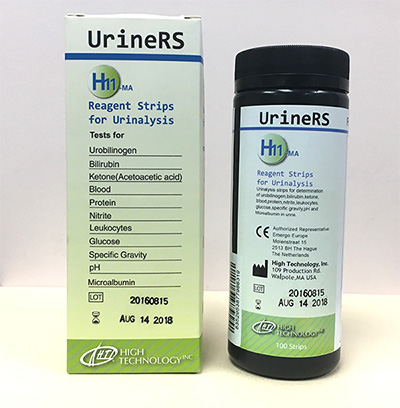 Тест-полоски для анализаторов мочи размещены в пенале по 100 штук. Используются для лабораторной диагностики мочи. Позволяют определить такие показатели как, глюкоза, билирубин, лейкоциты и эритроциты, кетоны, нитриты, белок, микроальбумин, уробилиноген, а также кислотность среды и удельный вес мочи.