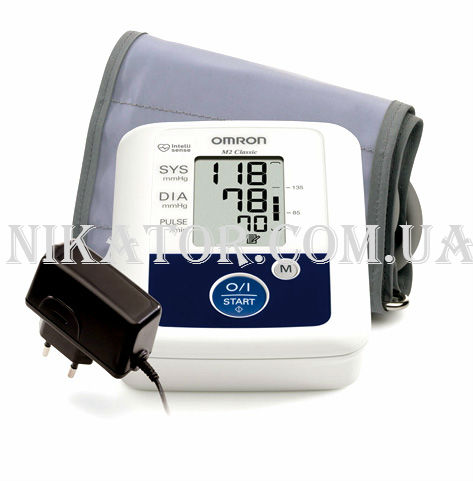 Автоматический тонометр состоит из электронного блока с крупным дисплеем и манжеты. На дисплее отображается САД и ДАД, индикатор сердцебиения, индикатор декомпрессии, индикатор низкого уровня заряда батареи и частота пульса. Кроме того, тонометр M2 Classic предлагает графическое отображение уровня АД, что позволяет не только увидеть цифры измерения, но и отследить, как соотносятся личные данные артериального давления с рекомендованными ВОЗ параметрами. Тонометр OMRON M2 Classic имеет функцию «индикация аритмии»: если ритм был неправильный, прибор известит Вас об этом или выведет символ ошибки, что значит – измерение в данный момент невозможно и будет неточным.  Манжета, идущая в комплекте с прибором, подходит для среднего размера руки, а также для крупного плеча. Данная модель тонометра имеет веерообразную манжету, что позволяет получить более точные результаты и избежать болезненных ощущений при передавливании руки манжетой, так как артерия пережимается по всей длине манжеты, что способствует равномерному распределению давления. Больше не нужно следить за состоянием аккумуляторов и иметь сменные в запасе, так как тонометр OMRON M2 Classic имеет в комплекте сетевой адаптер.