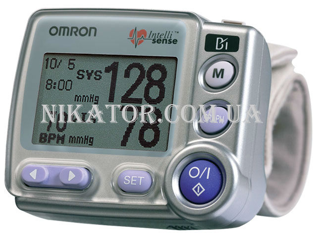 Автоматический тонометр на запястье состоит из электронного блока с крупным дисплеем и манжеты. На дисплее отображается САД и ДАД, индикатор сердцебиения, индикатор декомпрессии, индикатор низкого уровня заряда батареи и частота пульса. Тонометр OMRON R7 имеет функцию «будильник» или «напоминание, а также позволяет графически отобразить недельные результаты изменения. Манжета, идущая в комплекте с прибором, подходит для среднего размера запястья и имеет размер 13,5-21,5 см. Данная модель тонометра имеет комфортную манжету, что позволяет получить более точные результаты и избежать болезненных ощущений при передавливании руки манжетой, так как артерия пережимается по всей длине манжеты, что способствует равномерному распределению давления. От других моделей тонометр OMRON R7 отличается наличием индикатора правильного положения запястья во время измерения, что делает каждое измерение правильным и позволяет получить самый точный результат. Прибор оповестит Вас о неправильном положении специальным графическим символом. Большим преимуществом OMRON R7 является возможность подключения к ПК.
