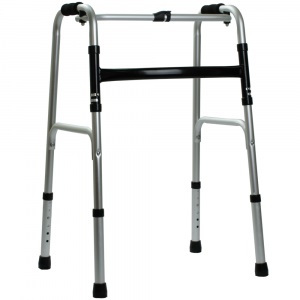 Универсальные ходунки изготовлены из алюминия, что гарантирует прочность и в тоже время легкость конструкции. Высота ходунков регулируется от 76 см до 89 см. Ходунки легко складываются для транспортировки, их удобно брать с собой. Так как модель универсальная, ее модно использовать в фиксированном и шагающем режиме. Резиновые наконечники предотвращают скольжение на поверхности. Максимальная нагрузка на ходунки 136 кг. Ширина 50 см.