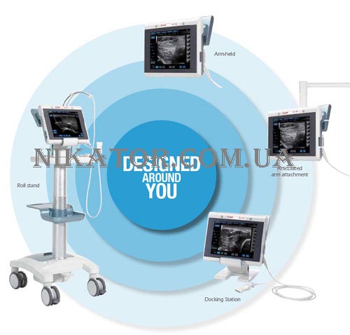 Благодаря компактному дизайну и встроенной батарее с продолжительным временем работы MyLab™One можно быстро и просто перенести туда, где требуется ультразвуковое исследование – в отделение или к постели пациента..